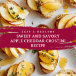 These Apple and Cheddar Crostini make a delightful appetizer, combining the crisp sweetness of apples with the sharpness of cheddar cheese. Finished with a light drizzle of honey and fresh thyme, they are perfect for entertaining or a simple snack.