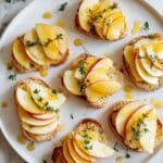 These Apple and Cheddar Crostini make a delightful appetizer, combining the crisp sweetness of apples with the sharpness of cheddar cheese. Finished with a light drizzle of honey and fresh thyme, they are perfect for entertaining or a simple snack.