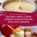 Keywords: apple cider cheese fondue, smoked gouda fondue, Swiss cheese fondue, cheddar cheese dip, cozy fall appetizer, crockpot fondue recipe