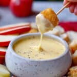Keywords: apple cider cheese fondue, smoked gouda fondue, Swiss cheese fondue, cheddar cheese dip, cozy fall appetizer, crockpot fondue recipe