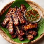 Authentic Moo Dad Deaw is a traditional Thai pork jerky recipe featuring thinly sliced marinated pork, infused with roasted spices and garlic, sun-dried for several hours, and then cooked by deep-frying or grilling to achieve a perfect balance of savory, sweet, and smoky flavors.