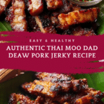 Keywords: Moo Dad Deaw, Thai pork jerky, Thai snack, marinated pork jerky, dried pork recipe, grilled pork jerky, deep-fried pork