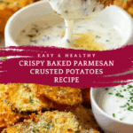 These Baked Parmesan Crusted Potatoes are a perfect combination of crispy, cheesy crust on the outside with soft, fluffy potatoes inside. Made with baby potatoes coated in a flavorful parmesan and herb mixture, then baked to golden perfection. Served with a refreshing sour cream and green onion dipping sauce, they make an easy, crowd-pleasing side dish ideal for weeknights or dinner parties.