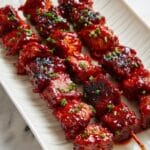 - If you prefer less spicy skewers, reduce or omit the red pepper flakes and sriracha.