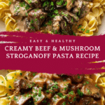 Keywords: Beef stroganoff, mushroom stroganoff, creamy beef pasta, quick dinner recipe, easy stovetop meals