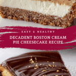 Keywords: Boston Cream Pie Cheesecake, cheesecake recipe, chocolate ganache cheesecake, graham cracker crust cheesecake, baked cheesecake dessert
