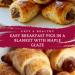 Keywords: breakfast pigs in a blanket, cinnamon rolls, sausage links, maple glaze, easy breakfast recipe, brunch, portable breakfast, sweet and savory