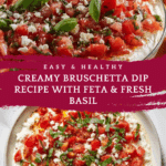 Keywords: bruschetta dip, tomato dip, feta dip, appetizer, party dip, Italian appetizer, no-cook dip, creamy dip, basil dip, easy appetizer