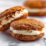 These Carrot Cake Cookies are a delightful twist on classic carrot cake, made easy with boxed mix and loaded with white chocolate chips. Each cookie is sandwiched with a creamy, tangy toasted coconut cream cheese frosting, offering a perfect balance of sweetness and texture for a unique dessert treat.