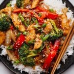 Keywords: chicken stir fry, quick dinner, Asian stir fry, broccoli stir fry, chicken and vegetables, healthy stir fry, soy sauce chicken