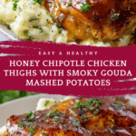 Keywords: Chipotle Honey Chicken, Smoked Gouda Mashed Potatoes, Baked Chicken Thighs, Comfort Food, Spicy Sweet Chicken