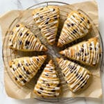 10. Glaze and Cool: Remove the scones from the oven and let them cool slightly. Drizzle the vanilla glaze generously over the warm scones for a sweet finishing touch.