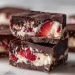 Delicious and refreshing Chocolate Strawberry Yogurt Clusters that combine the natural sweetness of strawberries and the creaminess of Greek yogurt, coated in rich semi-sweet chocolate. These bite-sized frozen treats are perfect for a healthy snack or dessert, easy to make, and visually appealing with a perfect balance of flavors and textures.