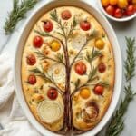 Celebrate the season with this delightful Christmas Tree Focaccia, a festive twist on classic Italian bread. Adorned with fresh rosemary, pear slices, cherry tomatoes, and pearl onions, it’s both a delicious snack and a beautiful centerpiece for your holiday table.