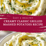 Classic Grilled Mashed Potatoes combine the smoky char of grilled russet potatoes with creamy butter, half and half, and chicken stock. This comforting side dish is seasoned perfectly with salt, pepper, garlic powder, and a touch of seasoned salt to enhance the flavor and create a rich, smooth texture.