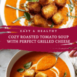 Keywords: roasted tomato soup, grilled cheese, comfort food, easy soup recipe, cozy meal, homemade soup, simple ingredients, roasted vegetables, creamy soup