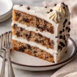 This decadent Cookie Dough Cake combines rich brown butter cake layers with layers of edible cookie dough and a luscious brown butter cookie dough buttercream. The cake features tender cake made with browned butter and brown sugar, sandwiched with buttery, safe-to-eat cookie dough and frosted with a creamy, sweet brown butter buttercream dotted with mini chocolate chips. Perfect for celebrations, this show-stopping dessert blends classic flavors with indulgent textures.