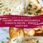 This Copycat Olive Garden Smoked Mozzarella Fonduta is a warm, creamy, and cheesy dip featuring smoked provolone, mozzarella, and Parmesan cheeses blended with a touch of sour cream and spices. Served bubbling hot with toasted baguette slices, it’s perfect as an appetizer or party snack.