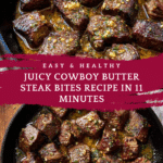 Keywords: steak bites, cowboy butter, skillet steak, appetizer, quick steak recipe, seared steak, buttery steak bites