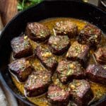 Keywords: steak bites, cowboy butter, skillet steak, appetizer, quick steak recipe, seared steak, buttery steak bites