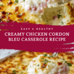 Keywords: chicken cordon bleu casserole, creamy chicken casserole, baked chicken and ham dish, Swiss cheese casserole, comfort food