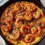 A quick and flavorful Creamy Garlic-Paprika Shrimp Skillet featuring succulent shrimp cooked in a rich, smoky paprika and garlic cream sauce, perfect for a comforting and elegant weeknight dinner.