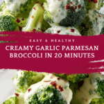 Keywords: creamy garlic parmesan broccoli, broccoli side dish, cheesy broccoli, quick broccoli recipe, stovetop broccoli, healthy vegetable side, garlic parmesan sauce