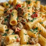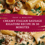 Creamy Italian Sausage Rigatoni is a comforting and flavorful pasta dish featuring al dente rigatoni tossed in a rich, creamy Parmesan sauce with savory Italian sausage and aromatic herbs. Perfect for a quick weeknight dinner or impressing guests with a gourmet Italian meal in just 30 minutes.