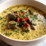 This Creamy Philly Cheese Steak Soup reimagines the classic sandwich as a rich, comforting soup featuring tender beef, sautéed peppers and onions, and a velvety, cheesy broth. Perfect for a cozy meal, it comes together quickly in one pot and serves four.