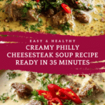 This Creamy Philly Cheese Steak Soup turns the beloved sandwich into a warm, comforting bowl of cheesy goodness. Tender beef, sautéed peppers, and onions mingle in a rich, velvety broth that’s perfect for cozy nights. You’ll have this delicious soup ready in just 35 minutes using only one pot.