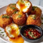 Crispy fried burrata is a delightful twist on the classic creamy cheese, coated in crunchy panko and fried to golden perfection. Paired with a spicy dipping sauce, it makes a perfect appetizer or snack that’s sure to impress your guests.