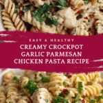 Keywords: Crockpot chicken, garlic parmesan chicken pasta, slow cooker pasta, creamy chicken pasta, easy dinner recipe