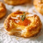 These Easy Apricot Jam & Gruyere Cheese Puff Pastry Bites are a perfect appetizer or snack, combining the rich, nutty flavor of Gruyere cheese with sweet apricot jam and a crunchy almond topping. Made with flaky puff pastry squares baked to golden perfection and garnished with fresh thyme and honey, they offer a delightful balance of savory and sweet in each bite.