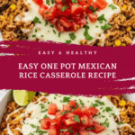 This Easy One Pot Mexican Rice Casserole is a delicious and convenient meal perfect for busy weeknights. Combining seasoned ground beef, rice, black beans, corn, and melted cheese, it delivers bold flavors in just one pot. It’s a crowd-pleasing dish that’s hearty, flavorful, and simple to prepare.