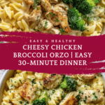 Keywords: Cheesy Chicken Orzo, Chicken Broccoli Pasta, Easy Dinner, One-Pan Meal, Creamy Orzo, Quick Chicken Dinner