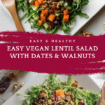 This Easy Vegan Lentil Salad is a flavorful, nutrient-packed dish perfect for a quick lunch or a healthy side. Featuring cooked lentils, shredded carrots, celery, fennel, dates, olives, and toasted walnuts, it’s tossed with a vibrant dressing of olive oil, garlic, lemon juice, balsamic vinegar, mustard, maple syrup, turmeric, and cinnamon. Serve it over massaged kale or arugula for an extra green boost. Ready in just 17 minutes, this salad stores well in the fridge for up to five days, making it ideal for meal prep.