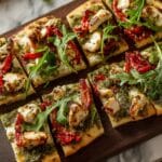 This Flavor-Packed Chicken Pesto Flatbread is a quick and delicious meal perfect for busy weeknights. With tender chicken, fresh pesto, and melty mozzarella, it combines vibrant flavors on a crisp flatbread base.