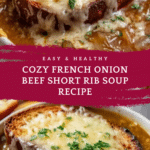 French Onion Beef Short Rib Soup is a comforting and rich twist on the classic French onion soup. Featuring tender, slow-cooked beef short ribs and deeply caramelized onions, this soup is perfect for cozy nights. Topped with toasted baguette and melted Gruyère cheese, it’s a satisfying meal that feels both elegant and hearty.