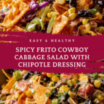 Frito Cowboy Cabbage is a vibrant, Tex-Mex inspired salad that combines crunchy coleslaw mix, black beans, corn, and fresh vegetables tossed in a creamy chipotle dressing. Topped with Chili Cheese Fritos for a spicy, cheesy crunch, this no-cook dish is perfect for quick meals or potlucks, delivering bold flavors in just 20 minutes.