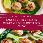 Keywords: Ginger chicken soup, Asian chicken meatballs, bok choy soup, healthy chicken soup, baked chicken meatballs, ginger garlic soup
