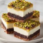 These Greek Honey Pistachio Cheesecake Bars combine a buttery graham cracker crust with a creamy honey-sweetened cheesecake filling and a crunchy pistachio topping. Finished with a golden honey drizzle, they are easy to slice, perfect for entertaining, and make-ahead friendly.