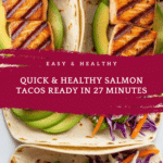 These salmon tacos are a healthy and delicious meal you can prepare in under 30 minutes. Fresh salmon cubes are marinated and pan-seared, then paired with a vibrant slaw and creamy avocado for a satisfying and flavorful taco experience.