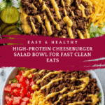 Keywords: cheeseburger salad, high protein salad, low carb burger bowl, gluten free burger, quick healthy dinner