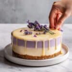 - Decorate and Serve: Once set, carefully release the cheesecake from the springform pan. Drizzle extra honey over the top and garnish with dried lavender sprigs just before serving.
