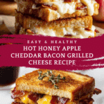 This Hot Honey Apple Cheddar Bacon sandwich combines the sweet and spicy flavors of roasted apples drizzled with hot honey, sharp cheddar cheese, and crispy candied bacon grilled to golden perfection. The herb butter spread on brioche or sourdough bread adds a flavorful, aromatic touch, making this grilled cheese sandwich a deliciously elevated comfort food perfect for brunch or a hearty snack.