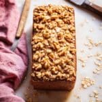 10. Finish and cool: Once done, sprinkle the Walnut Streusel evenly over the top of the bread. Let the bread cool in the pan on a wire rack for 10 minutes, then remove from the pan and cool for another 10 minutes before slicing and serving.