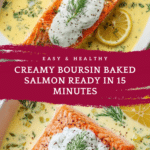 Keywords: Baked Boursin Salmon, creamy salmon recipe, quick salmon dinner, baked fish with cheese, dill salmon recipe, healthy seafood meal, easy weeknight dinner, Boursin cheese salmon, lemon garlic salmon