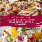 A flavorful and easy-to-make Italian Grinder Chicken Salad combining shredded rotisserie chicken with savory deli meats, cheeses, fresh veggies, and a tangy homemade dressing. Perfect for a quick lunch or light dinner, this salad can be eaten on its own, with crackers, or as a sandwich filling.