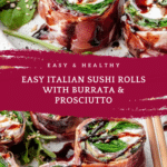 Keywords: Italian sushi, no-cook appetizer, prosciutto roll, burrata recipe, Italian salami, sun-dried tomatoes, easy Italian appetizer