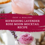 Keywords: lavender rose mocktail, floral mocktail, non-alcoholic sparkler, lavender syrup drink, rosewater beverage, calming drinks